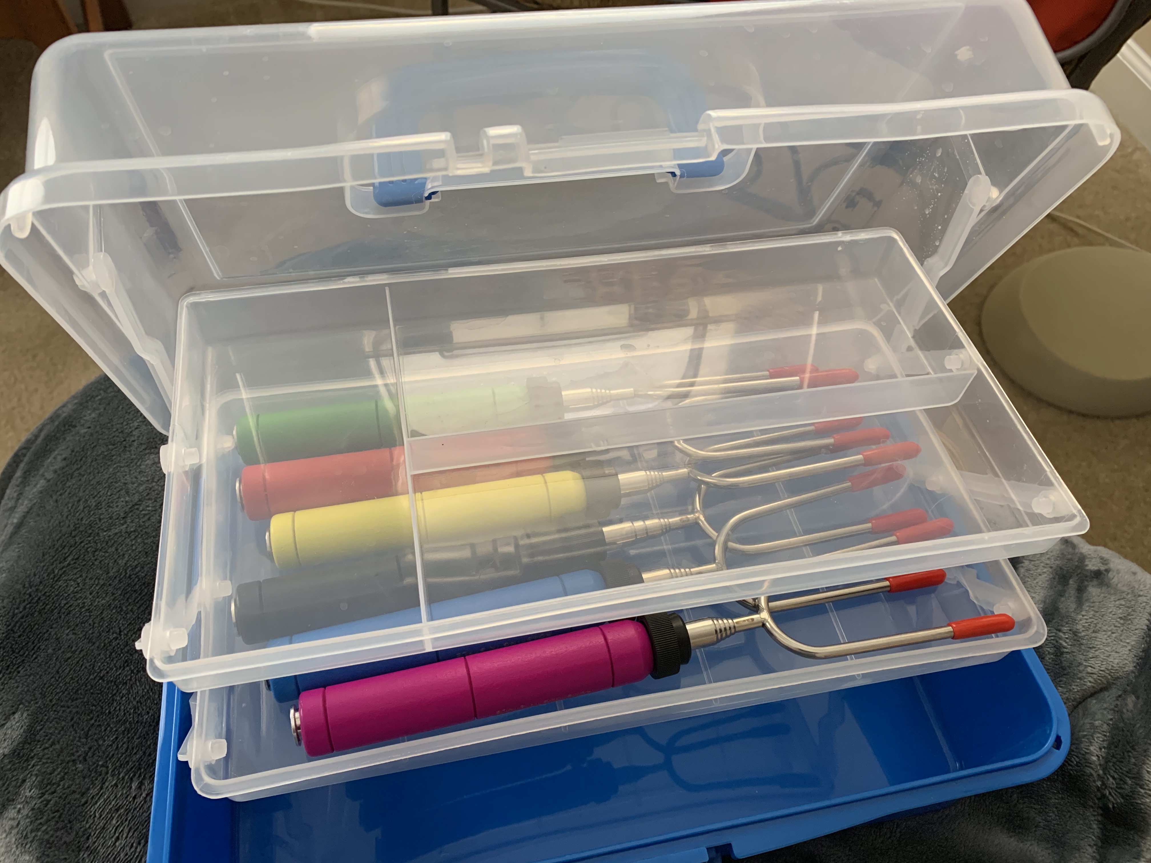 Snacks not only keep things calm and even keeled between meals on the road, they can also be fun when we’re not on the road. It will be summer when we hit Route 66 later this month. And many hotels now offer outdoor fire pits to enjoy during your stay. While most are powered by gas as opposed to your standard wood fire, it’s still just as fun to sit around and make s’mores. The fancy resorts often provide roasting sticks and marshmallows. But I say why take the risk? Bring your own tackle box full of s’mores supplies and guarantee yourself a few nights of snacking events!