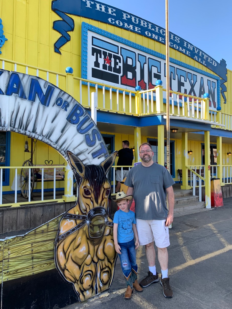 Who can visit Amarillo, TX and not stop at the Big Texan for a steak dinner? Not us! Such a fun atmosphere and a great steak. Notice that Ben is decked out in his cowboy boots and hat! Yee Haw!!