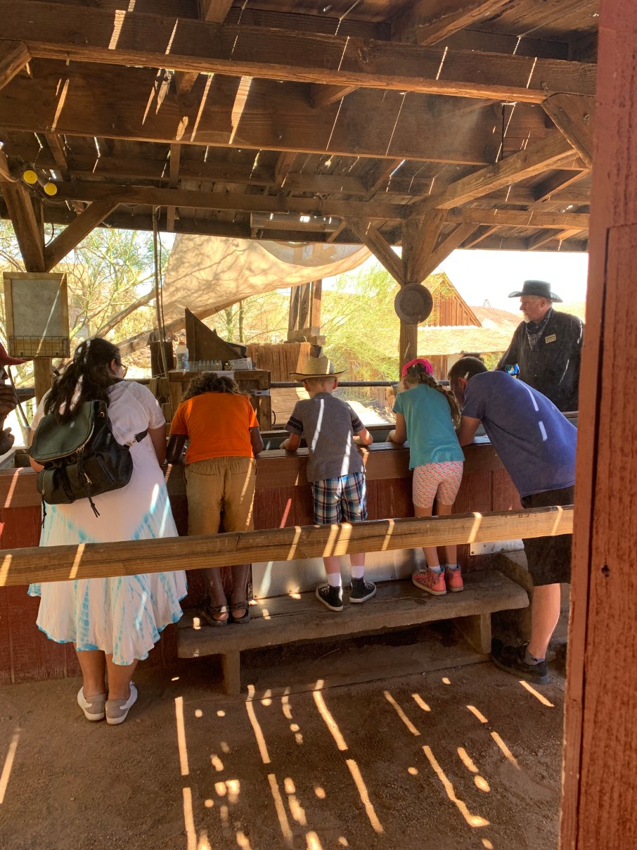 We had lunch (complete with some rustic flies), a short train ride, a small walking tour of Maggie’s silver mine and the kids even panned for gold.