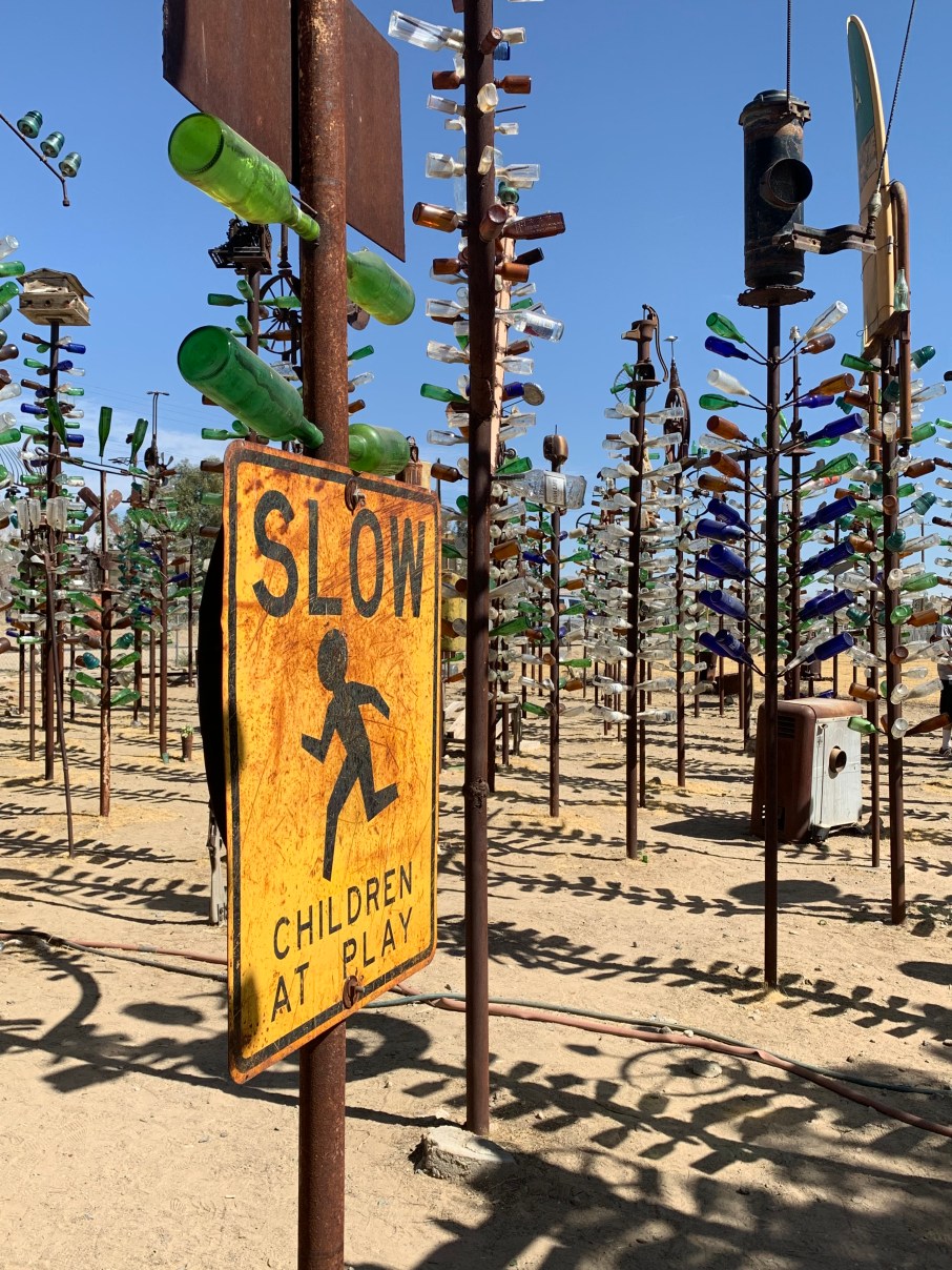 Our last required stop for the day was the Bottle Tree Ranch. A huge spot of land that serves as a canvas for bottle art right off the side of Route 66. There’s no structure or requirements as to how you walk around. Just follow whatever captures your interest.