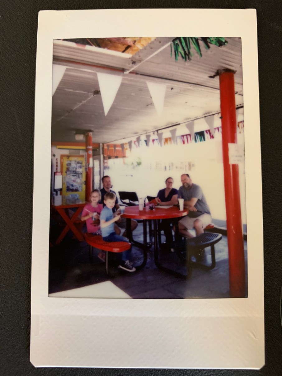 And in any case, she had the great idea to buy a Polaroid camera to go with the kids’ journals and the pictures that came out of that have their own old time look to them. Such a great idea. A sample is below.