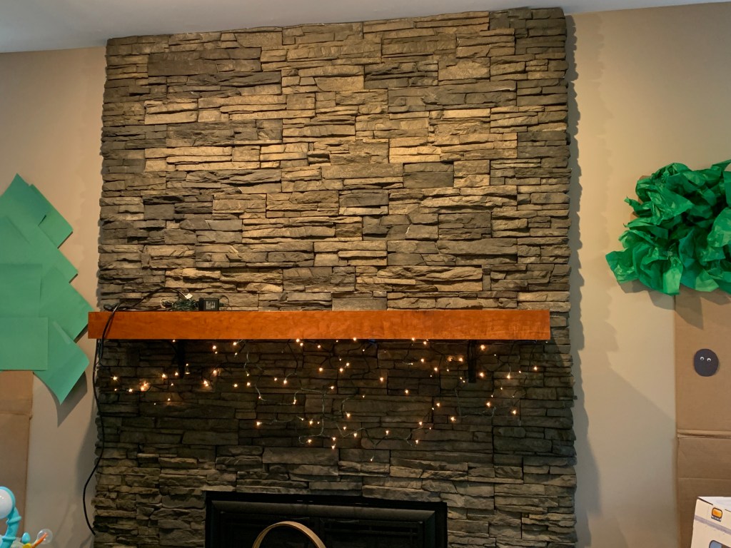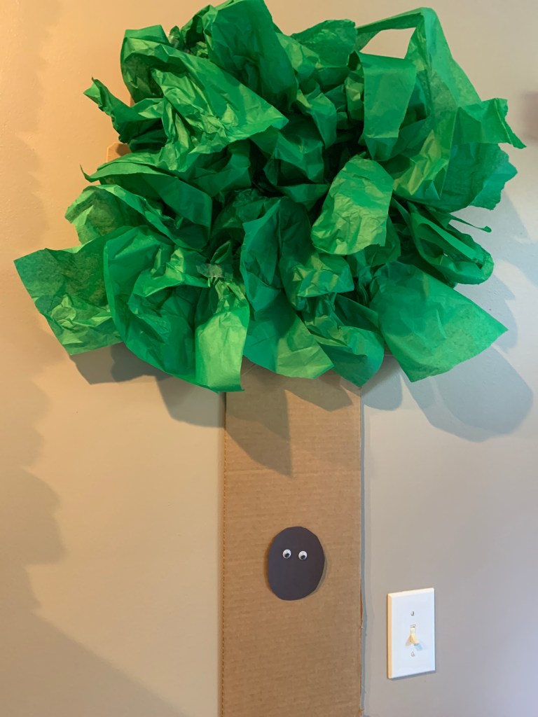 - Rustic atmosphere – despite working 9 1/2 hour days and homeschooling for 2 each day, there’s always a way to find time to enhance the campsite with a couple of handmade trees. Nestled next to the campfire (gas fireplace), they sparked excitement and anticipation as we got closer to the weekend. Take note of the added spooky eyes from some creature peering out of the dark hole in the trunk. These embellishments surely fuel some great campfire stories.