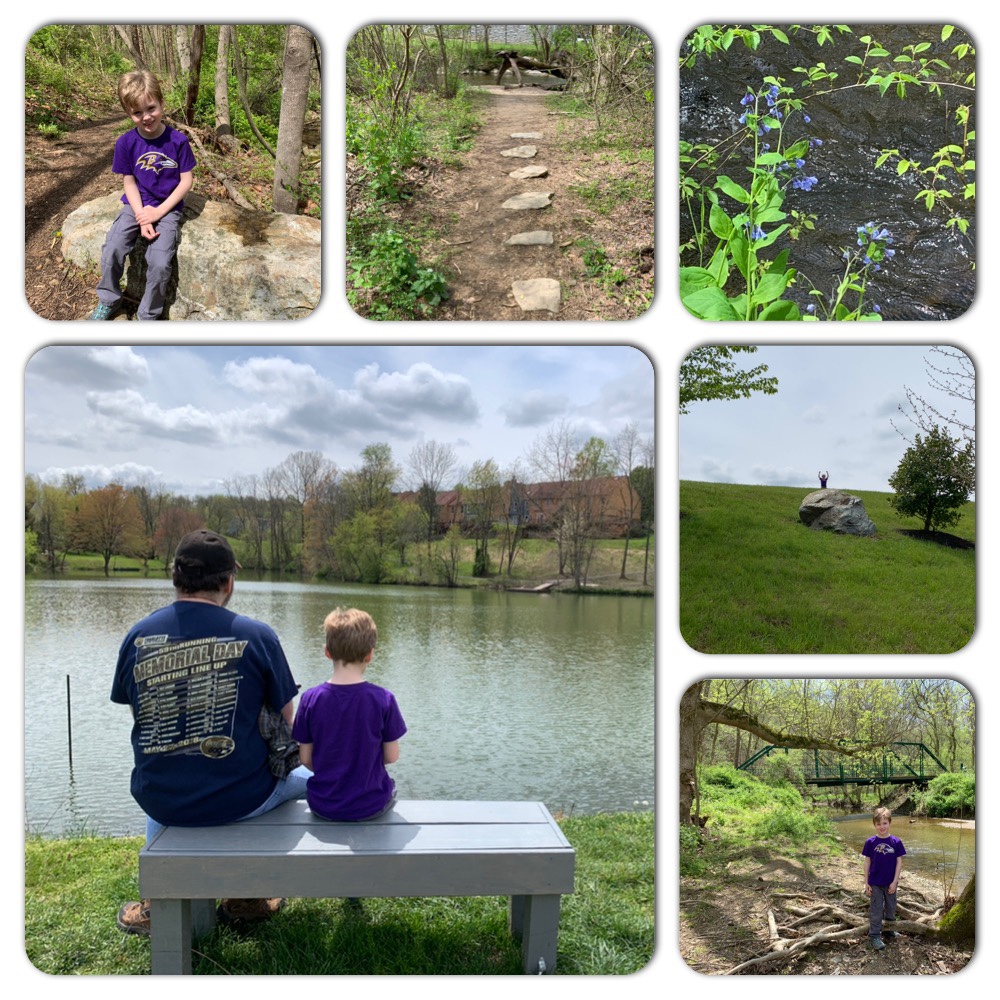 Now, we are very lucky that our town has a wonderful set of hiking trails that wind through several neighborhoods. In seven years however, we’ve only tried to find a trailhead near our house once when Ben was a baby. After finally finding an entrance, we had to turn around as it was not conducive to pushing a stroller. Somehow we never tried again. I guess we were too busy doing other things. Until now.